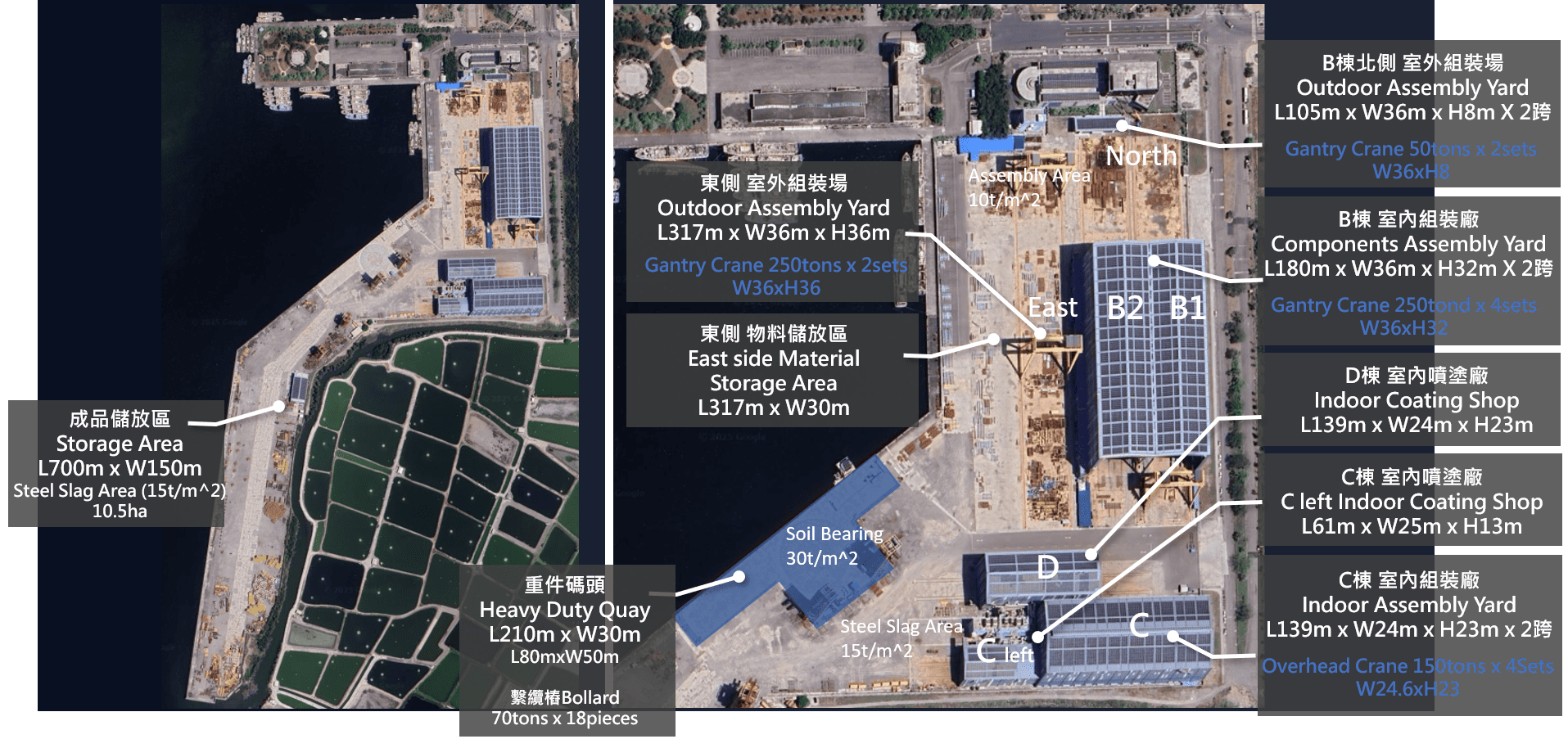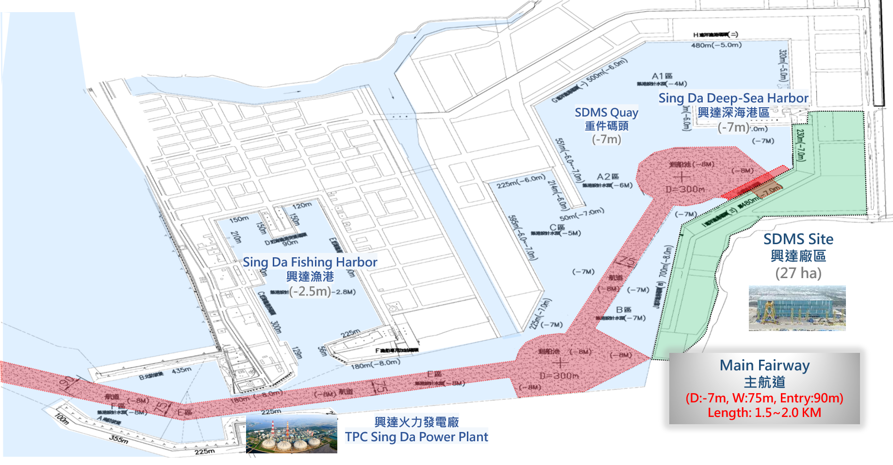水深-7米、長210公尺、寬30公尺(土地承載力30噸/平方米),70噸繫纜樁18個